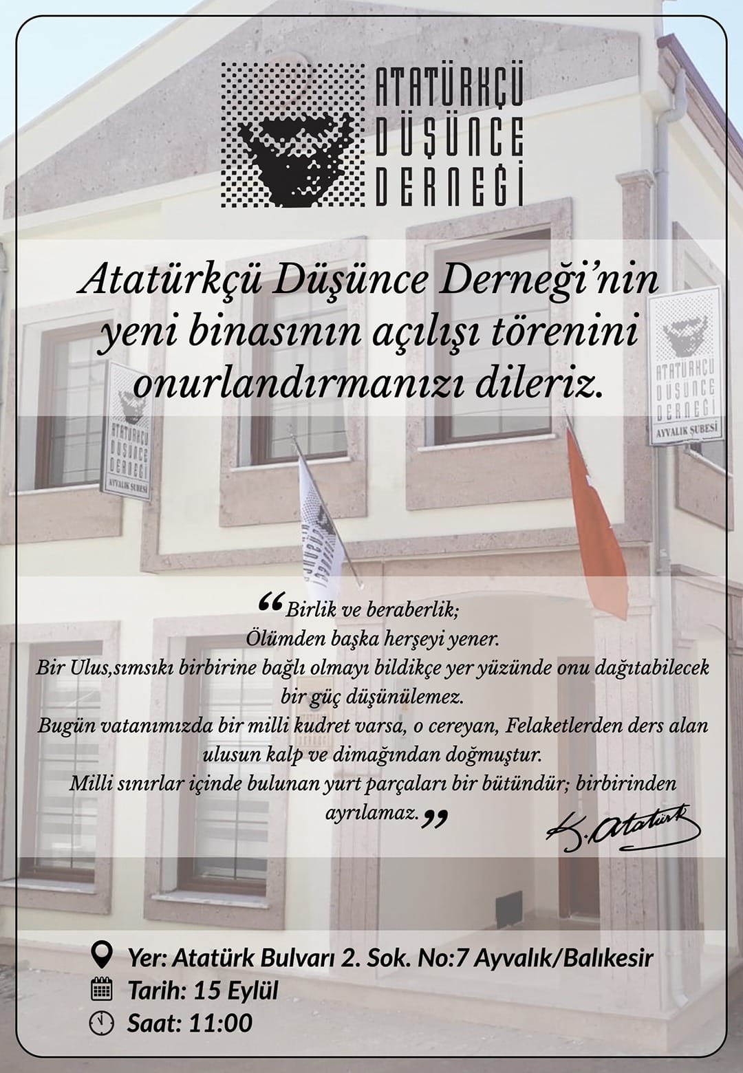 15 Eylülde düşman işgalinden kurtuluşunun 98.yıl dönümünü kutlayacağımız Ayvalık’ta; Aynı gün yeniden yapılan şube binamızın açılışını da siz katkı sunan Ayvalık Halkı ve üyelerimizle yapacağız.