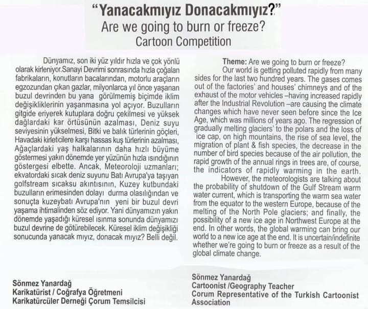 “Yanacak mıyız, Donacak mıyız?” başlıklı Uluslararası Karikatür Yarışma Sergisine davetlisiniz!